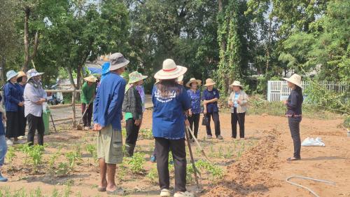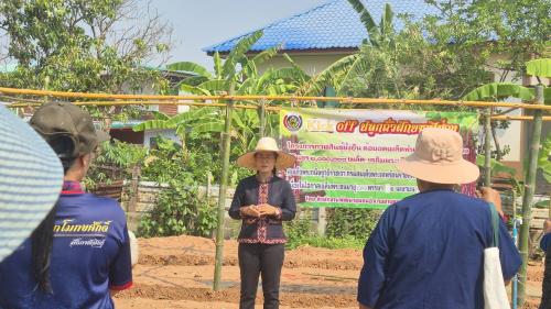 ณ แปลงผักชุมชนต้นแบบบ้านฮ่องฮี หมู่13 ตำบลยางตลาด อำเภอยางตลาด จังหวัดกาฬสินธุ์